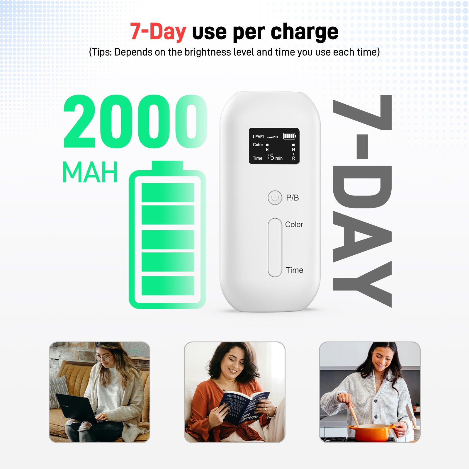 【Three buttons controller】The devices has three buttons to adjust the brightness level, switch modes, set time, and display. The controller is powered by an internal rechargeable lithium battery.