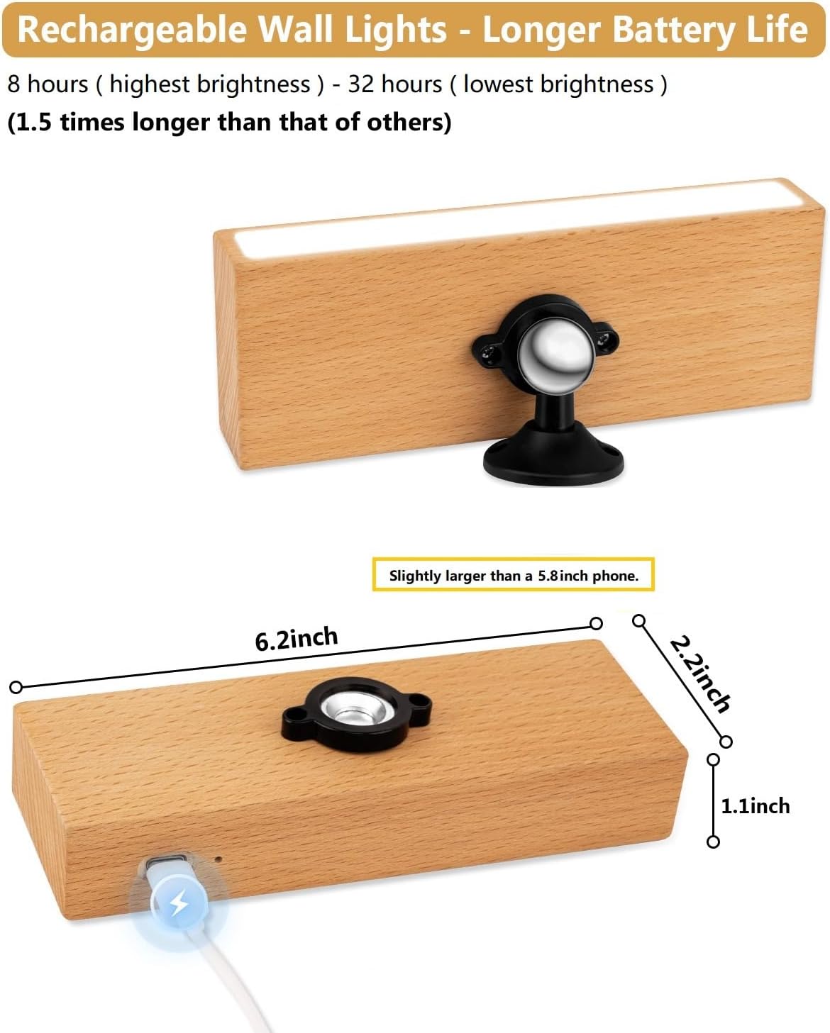 - Wireless Wall Lights: Wall sconce rechargeable measuring a compact 6.2"L x 2.2"W x 1.1"H. this modern wireless wall sconces set of two with elegant and minimalist solid wood design, easy fit into modern living spaces. Sconces wall decor set of 2 are an easy (enough) way to give a room a new look, creates many mood for a space.
